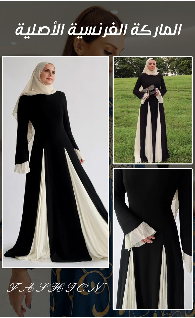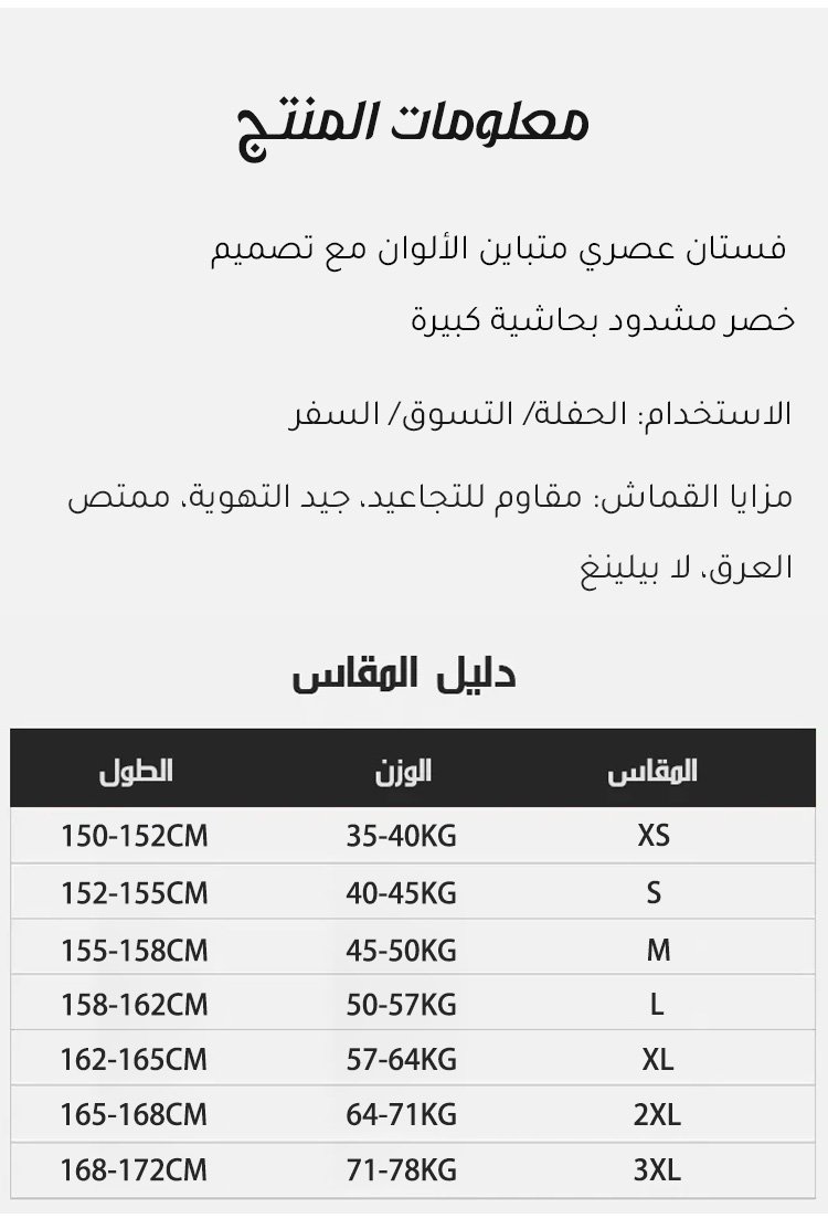 فستان عصري متباين الألوان مع تصميم خصر مشدود بحاشية كبيرة