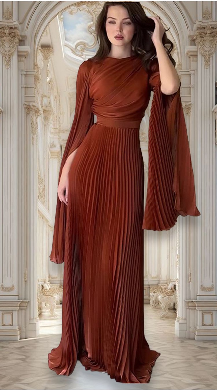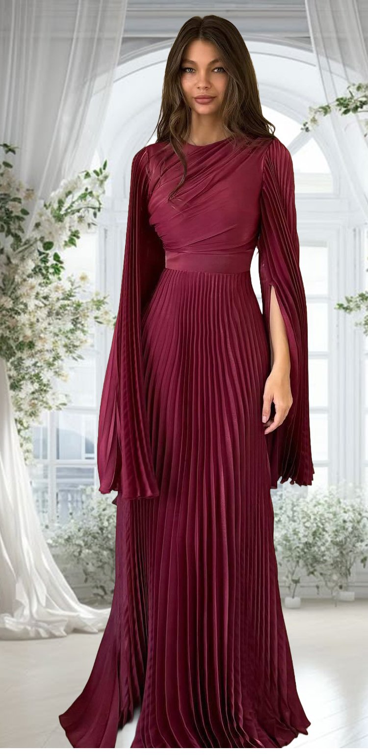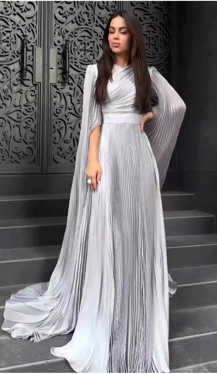 فستان سهرة راقية فاخرة مع طيات أنيقة بلون نقي